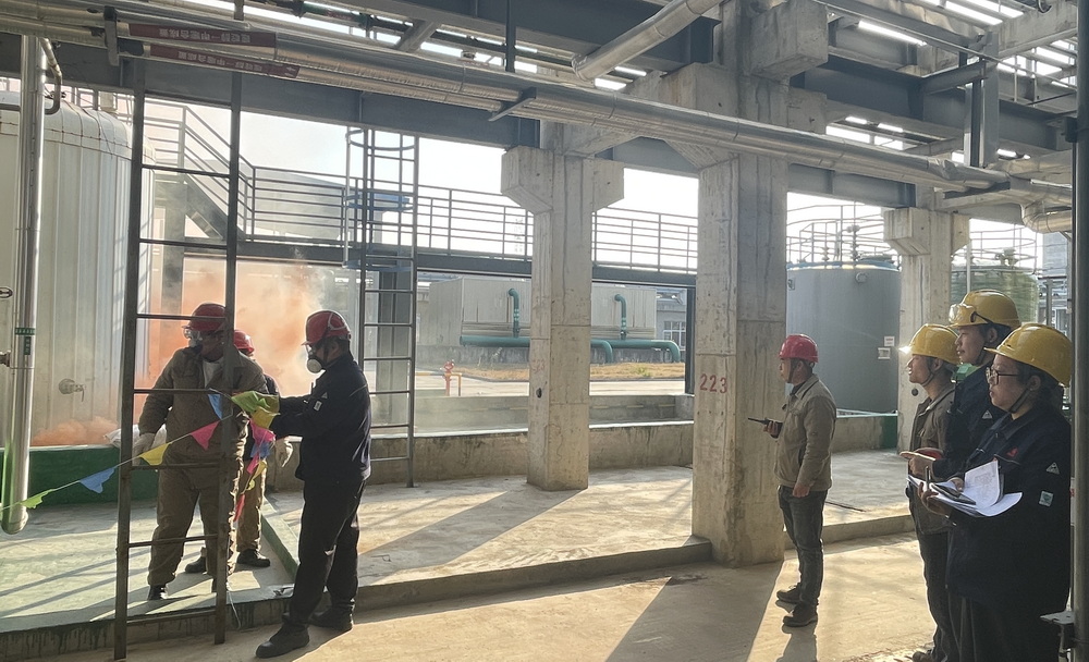 此次演练摒弃了“制定演练脚本、程序化演练”的传统形式,由公司安全生产主管领导及安环、生产、技术、车间相关人员等组成的评委团,开展“流动式”的现场突击考评,前往丁硫车间、甲嘧车间、环保车间、动力车间及分析检测中心,每到一个班组,由该班组负责人现场随机抽取应急处置课题后便当场宣布演练开始。